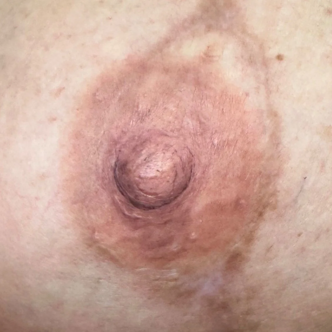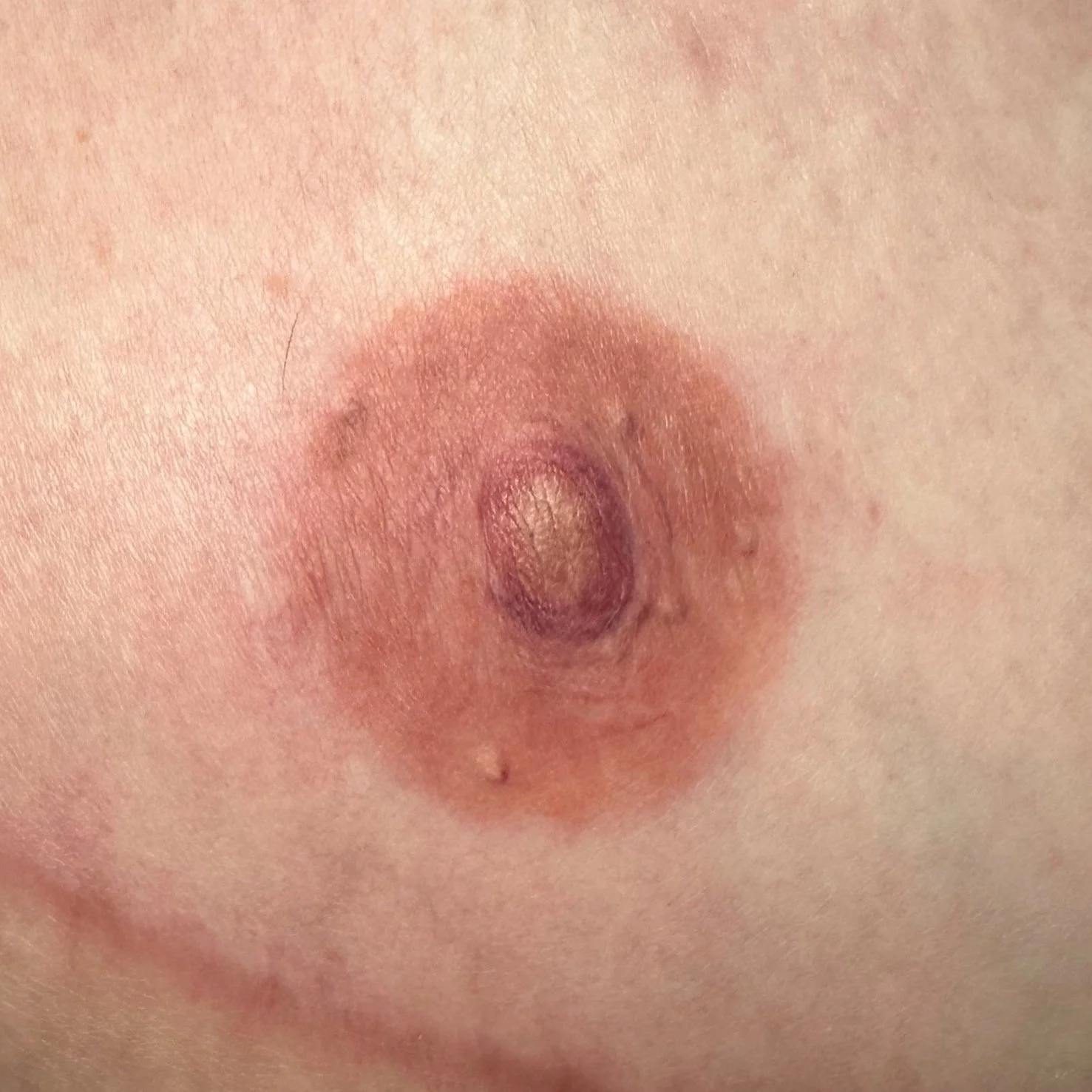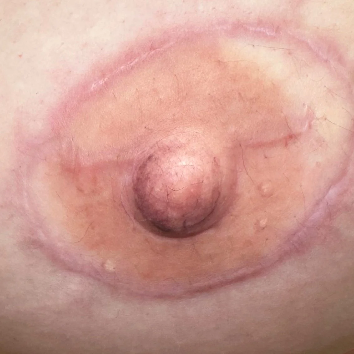 Shown here is a before-and-after of a 3D nipple tattoo created on a surgically reconstructed nipple bud.