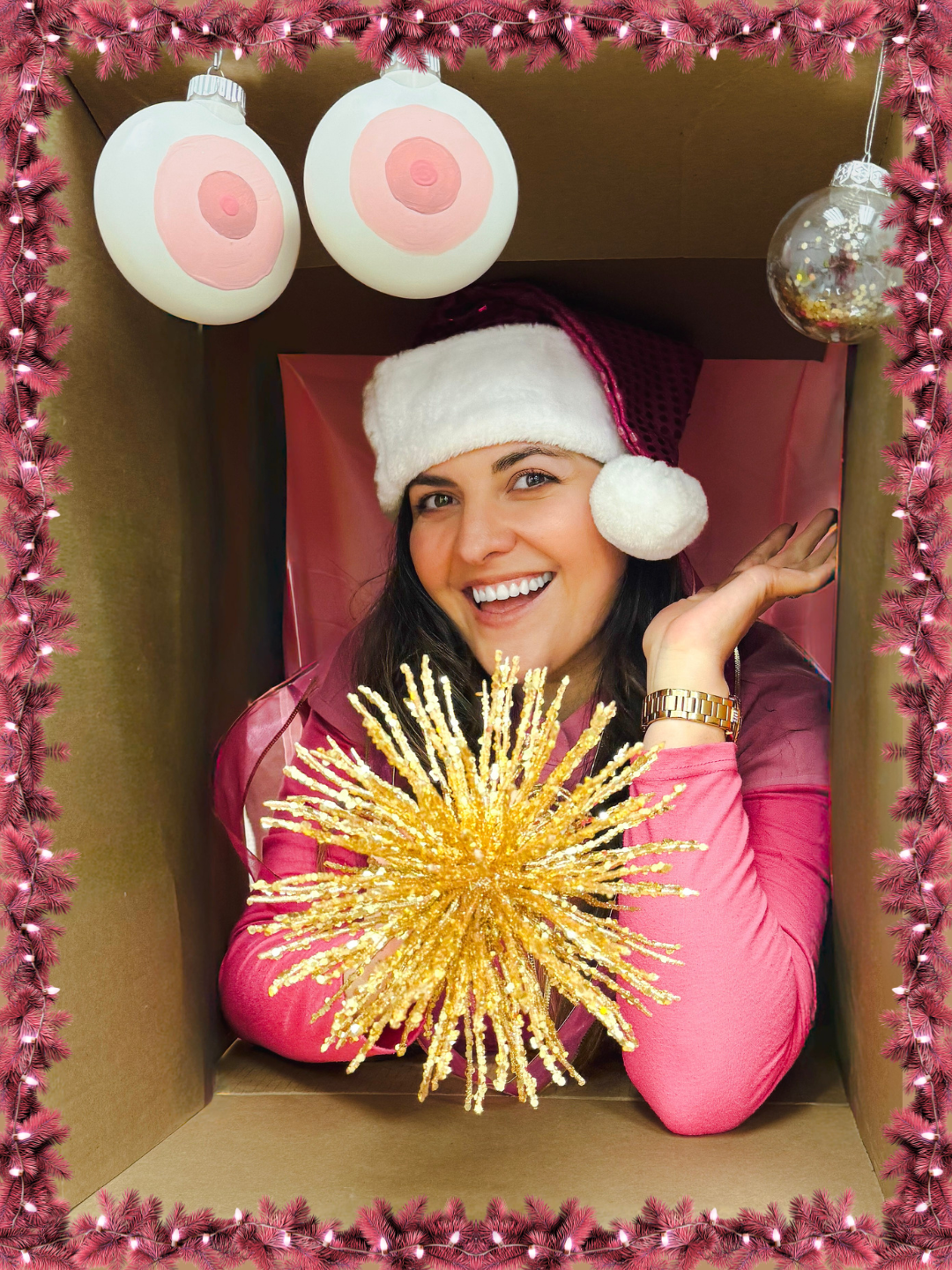 The internet is currently obsessed with the “Christmas Box Photo Trend” — so naturally, we had to make a Perky version. But instead of matching pajamas, our boxes are filled with something a little more meaningful: gentle reminders to care for your body, your breasts, and your mental health this season.
